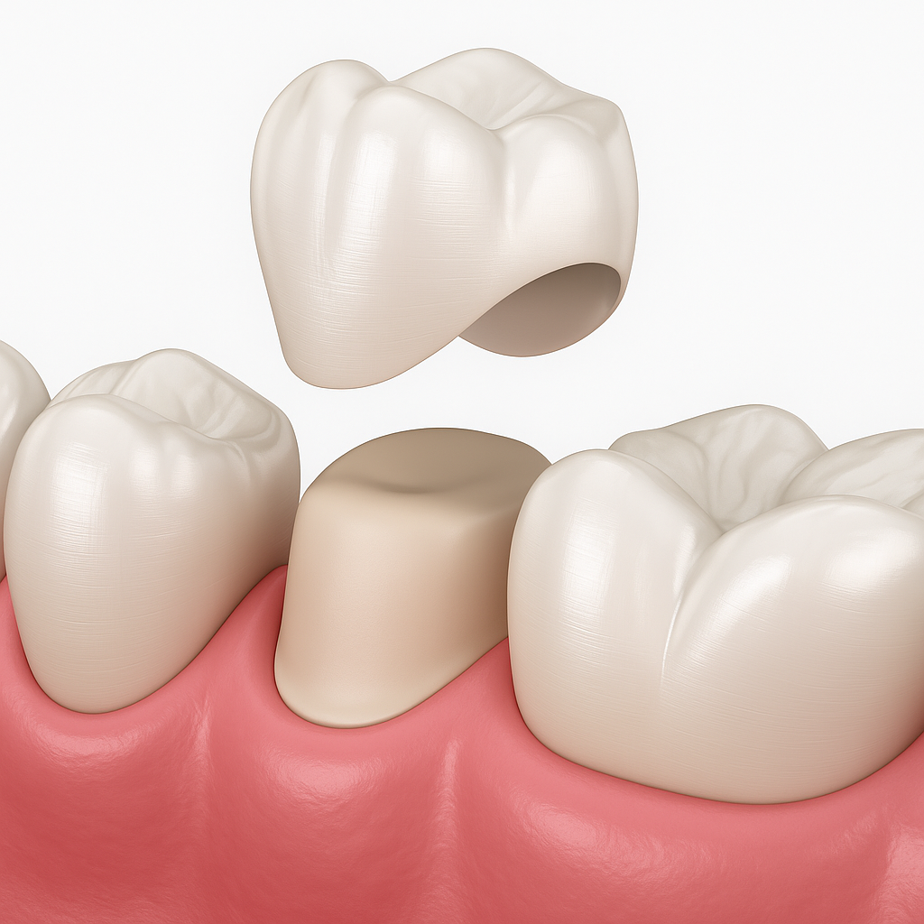 Зубная коронка представляет собой индивидуально изготовленный протез, который полностью покрывает коронковую часть разрушенного зуба, воссоздавая его естественную анатомию, функциональные характеристики и эстетические качества.