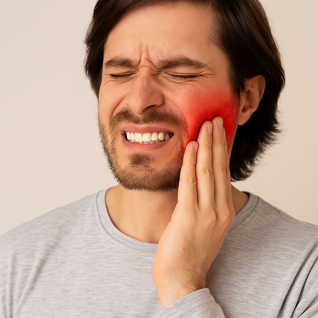Боль может быть пульсирующей, усиливаться при прикосновении, разговоре или жевании. Обычно она снимается обычными обезболивающими средствами.