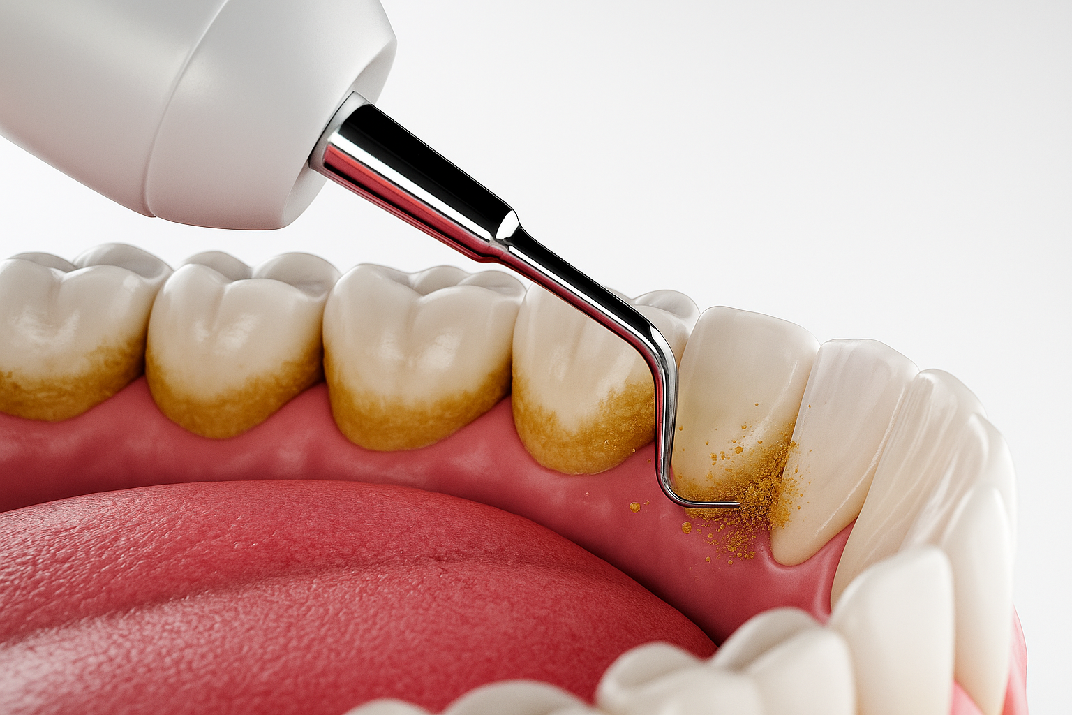 - Безболезненное удаление камня с помощью ультразвукового скалера.